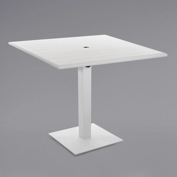BFM Seating Beachcomber-Margate 32″ Square White Aluminum Dining Height Outdoor / Indoor Table With Square Base And Umbrella Hole