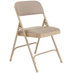 National Public Seating 2201 Beige Metal Folding Chair With 1 1/4″ Cafe Beige Fabric Padded Seat