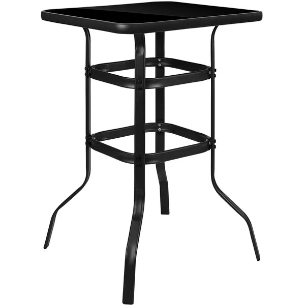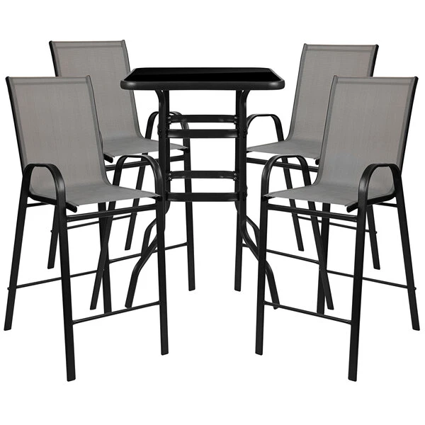 Flash Furniture TLH-073H092H4-GR-GG 27 1/2″ X 27 1/2″ X 39 1/2″ Outdoor Glass Bar Table Set With 4 Gray Chairs