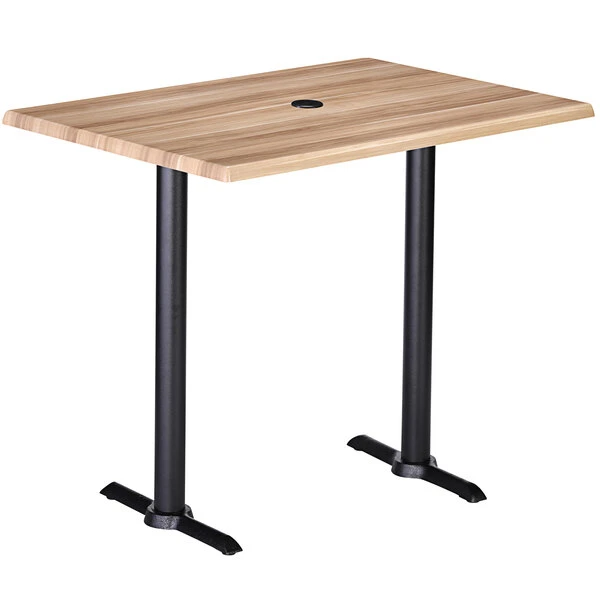 Holland Bar Stool EnduroTop 30″ X 48″ Natural Wood Laminate Outdoor / Indoor Bar Height Table With End Column Base And Umbrella Hole