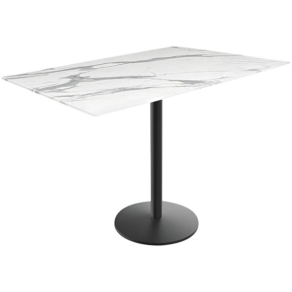 Holland Bar Stool EuroSlim 32″ X 48″ White Marble Indoor / Outdoor Bar Height Table With Round Base