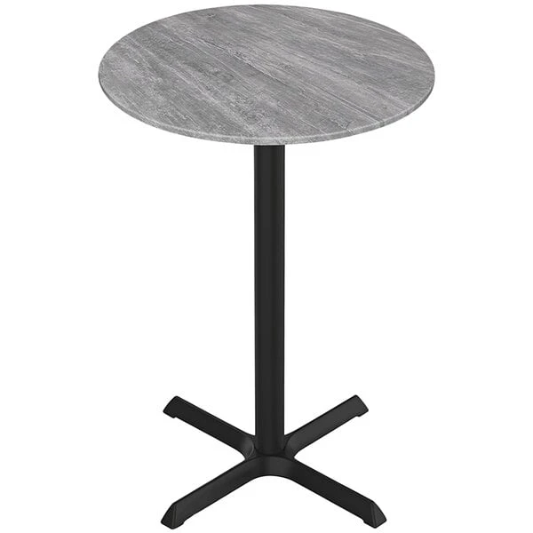 Holland Bar Stool EuroSlim 36″ Round Greystone Indoor / Outdoor Bar Height Table With Cross Base