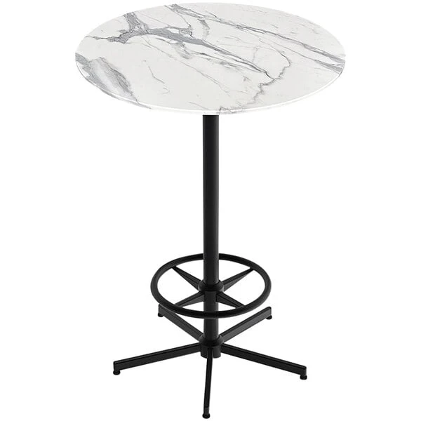 Holland Bar Stool EuroSlim 36″ Round White Marble Indoor / Outdoor Bar Height Table With Foot Rest Base
