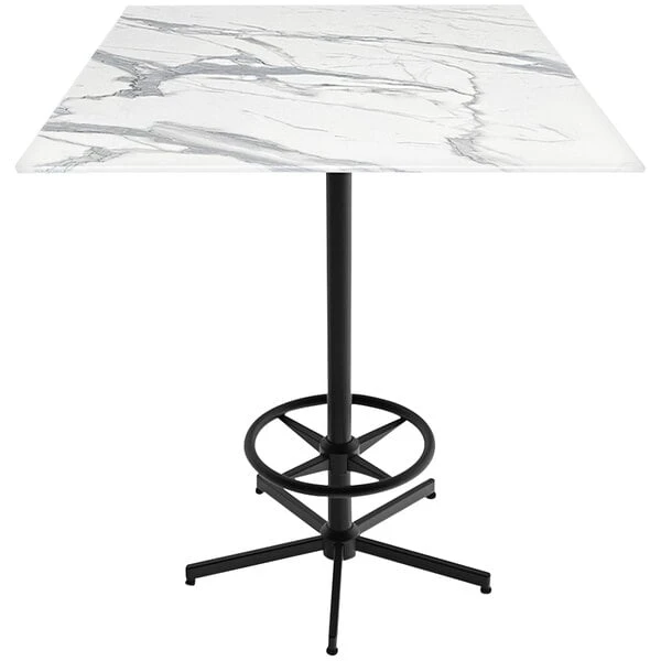 Holland Bar Stool EuroSlim Square White Marble Indoor / Outdoor Bar Height Table With Foot Rest Base