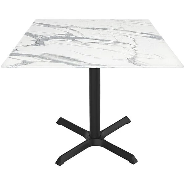 Holland Bar Stool EuroSlim Square White Marble Indoor / Outdoor Table With Cross Base