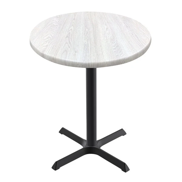Holland Bar Stool OD211-3030BWOD36RWA EnduroTop 36″ Round White Ash Wood Laminate Outdoor / Indoor Standard Height Table With Cross Base