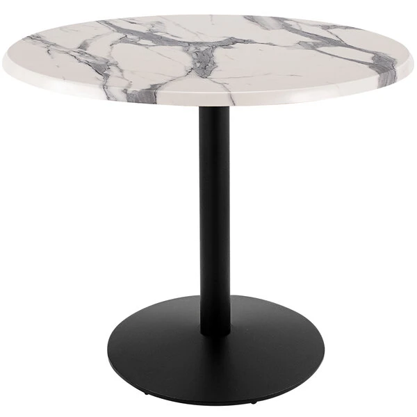 Holland Bar Stool OD214-2236BWOD36RWM 36″ Round White Marble Laminate Outdoor / Indoor Counter Height Table With Round Base