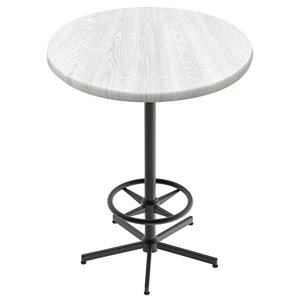Holland Bar Stool OD21642BWOD30RWA EnduroTop 30″ Round White Ash Wood Laminate Outdoor / Indoor Bar Height Table With Foot Rest Base