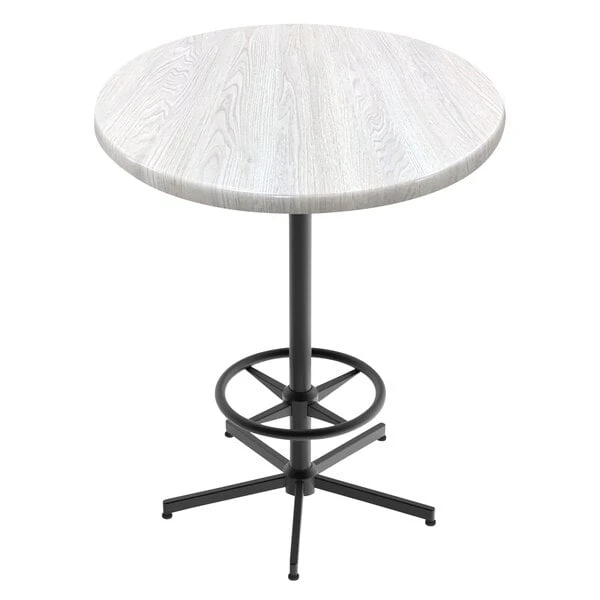 Holland Bar Stool OD21642BWOD36RWA EnduroTop 36″ Round White Ash Wood Laminate Outdoor / Indoor Bar Height Table With Foot Rest Base