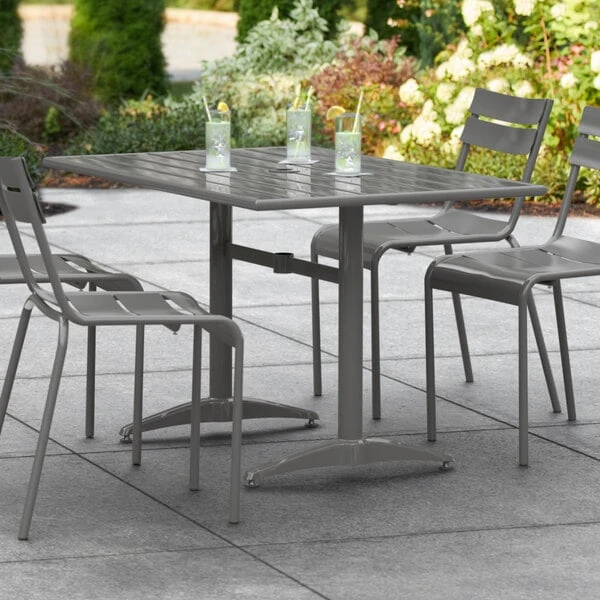 Lancaster Table & Seating 32″ X 48″ Gray Powder-Coated Aluminum Dining Height Outdoor Table With Umbrella Hole