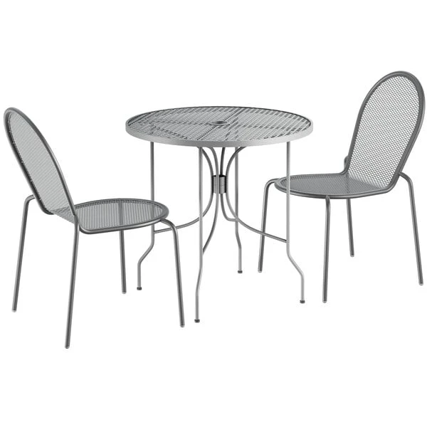 Lancaster Table & Seating Harbor Gray 30″ Round Outdoor Standard Height Table With Ornate Legs And 2 Side Chairs