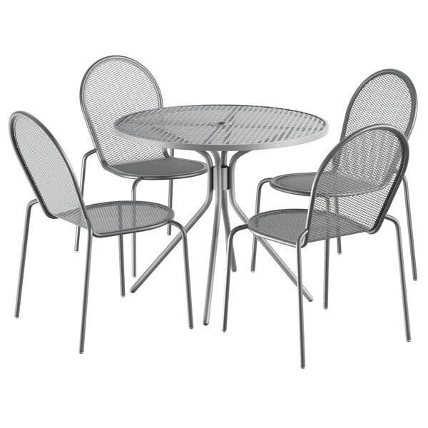 Lancaster Table & Seating Harbor Gray 36″ Round Outdoor Standard Height Table With Modern Legs And 4 Side Chairs