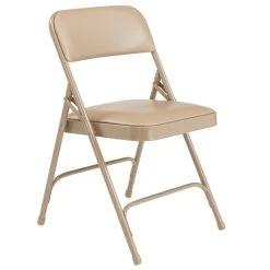 National Public Seating 3201 Beige Steel Folding Chair With 2″ Beige Vinyl Padded Back And Seat