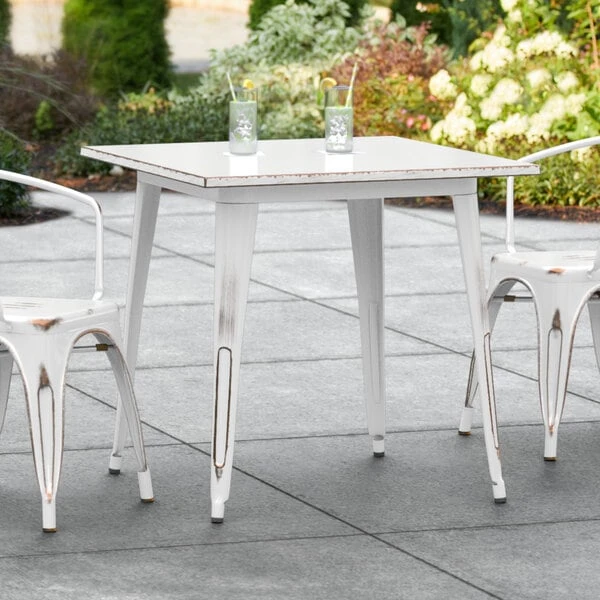 LT&S Alloy Series Lancaster Table & Seating Alloy Series 32″ X 32″ Distressed White Dining Height Outdoor Table