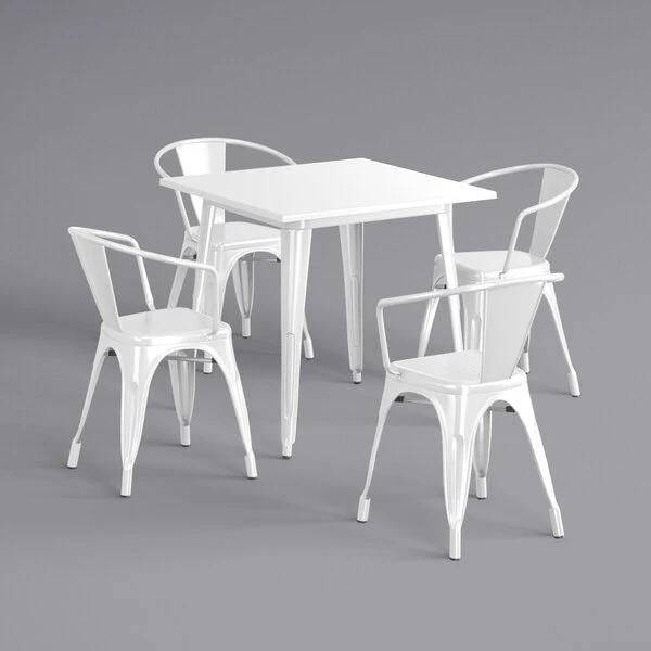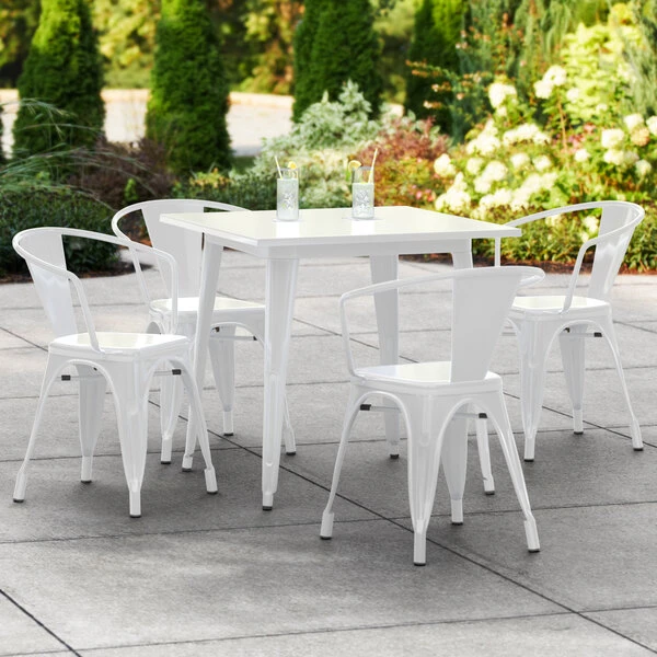 LT&S Alloy Series Lancaster Table & Seating Alloy Series 32″ X 32″ White Dining Height Outdoor Table With 4 Arm Chairs