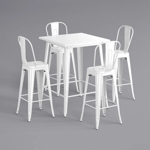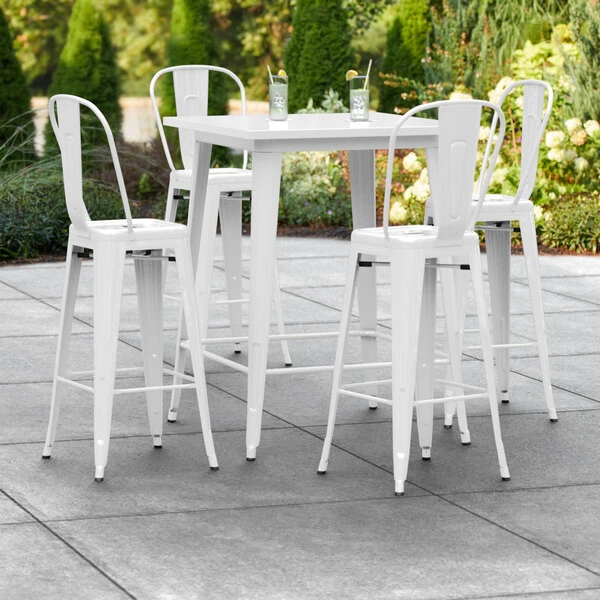 LT&S Alloy Series Lancaster Table & Seating Alloy Series 32″ X 32″ White Outdoor Bar Height Table With 4 Metal Cafe Bar Stools