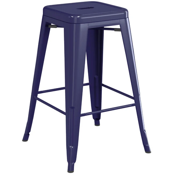 LT&S Alloy Series Lancaster Table & Seating Alloy Series Navy Stackable Metal Indoor / Outdoor Industrial Cafe Counter Height Stool With Drain Hole Seat