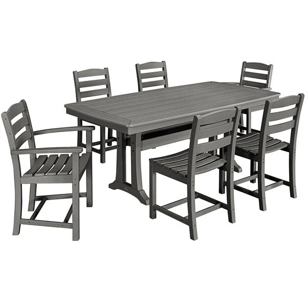POLYWOOD La Casa Cafe 7-Piece Slate Grey Dining Set With Nautical Trestle Table