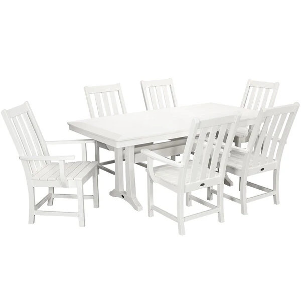 POLYWOOD Vineyard 7-Piece White Dining Set With Nautical Trestle Table And 6 Arm Chairs