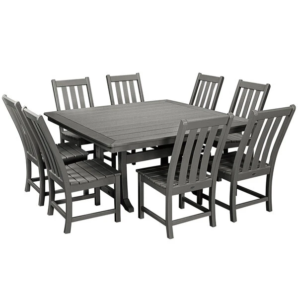 POLYWOOD Vineyard 9-Piece Slate Grey Dining Set With Nautical Trestle Table