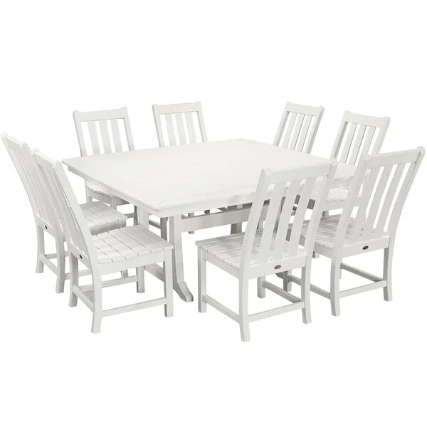 POLYWOOD Vineyard 9-Piece White Dining Set With Nautical Trestle Table
